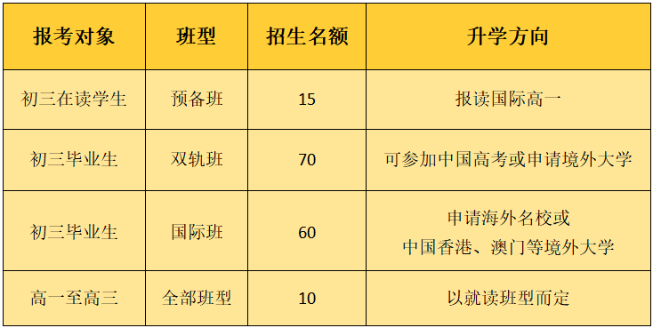 我校國際部提供中國普高課程和國際課程的雙軌國際班。讓學生在完成中國普高課程要求的同時,選修國際課程,實現(xiàn)既可以參加高考又同時申請海外(境外)世界名校的雙軌制,確保每個學生都能成功進入大學學習深造。