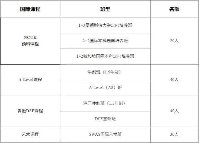 國際高中課程:A Level 課程(含牛劍班、A-Level(AS)班)、香港 DSE 課程(含港三沖刺班、DSE 基礎(chǔ)班)、藝術(shù)課程。