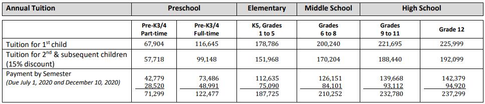 北京協(xié)力國(guó)際學(xué)校2020-2021學(xué)年學(xué)費(fèi)標(biāo)準(zhǔn)