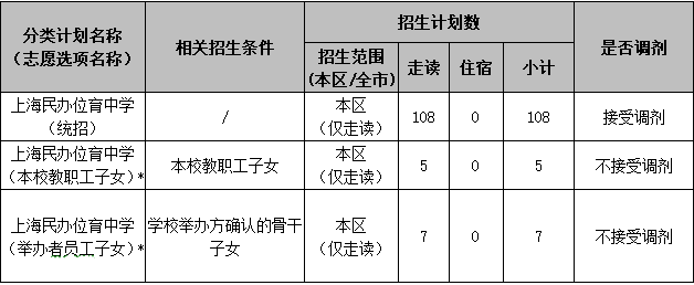 5月6日-5月8日,報(bào)名就讀民辦位育初中的學(xué)生須在“上海市義務(wù)教育入學(xué)報(bào)名系統(tǒng)”填報(bào)志愿,每個(gè)學(xué)生填報(bào)1所民辦初中參加電腦隨機(jī)錄取,并可填報(bào)1個(gè)民辦初中調(diào)劑志愿。